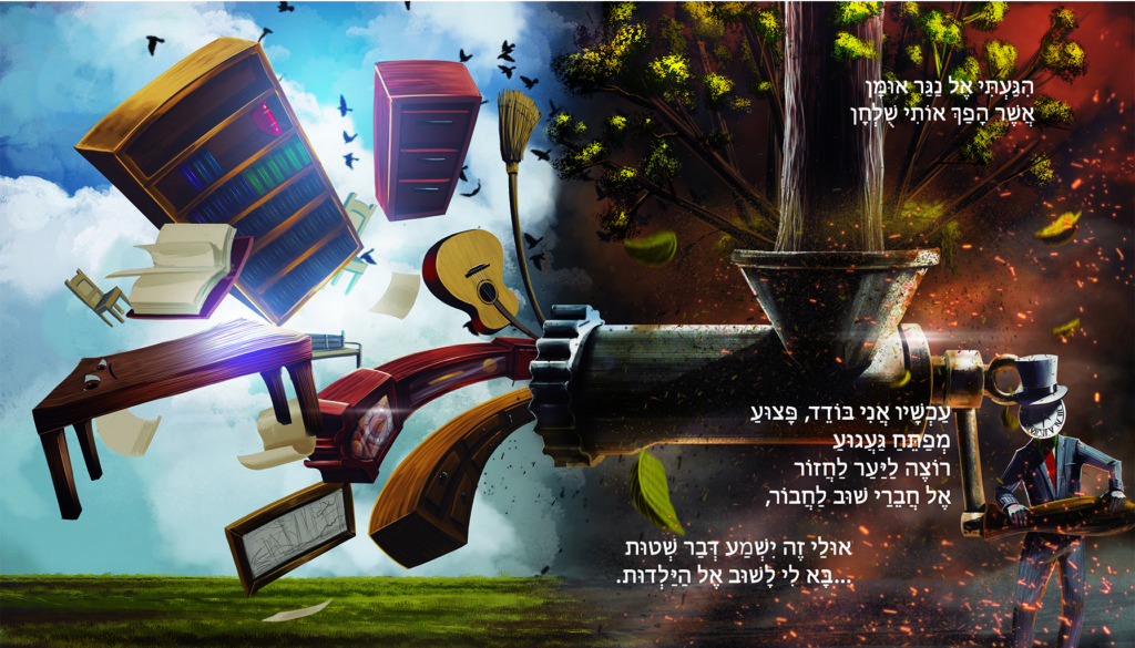 גיבור הסיפור הינו שולחן סלון. רגלו של השולחן נשברה והוא הושלך אל ערמת זבל.